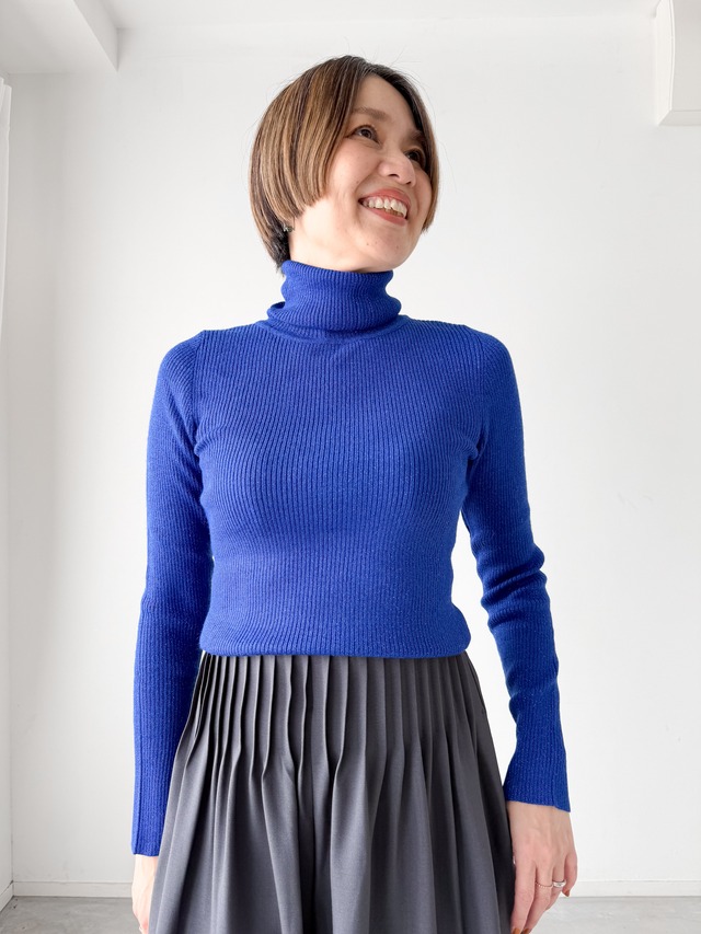アシンメトリーなチュールを飾るラメニットプルオーバートップス