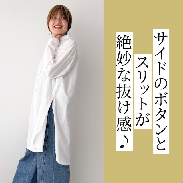 スリットに並ぶボタンシャツチュニックシャツ 【b08127ko】
