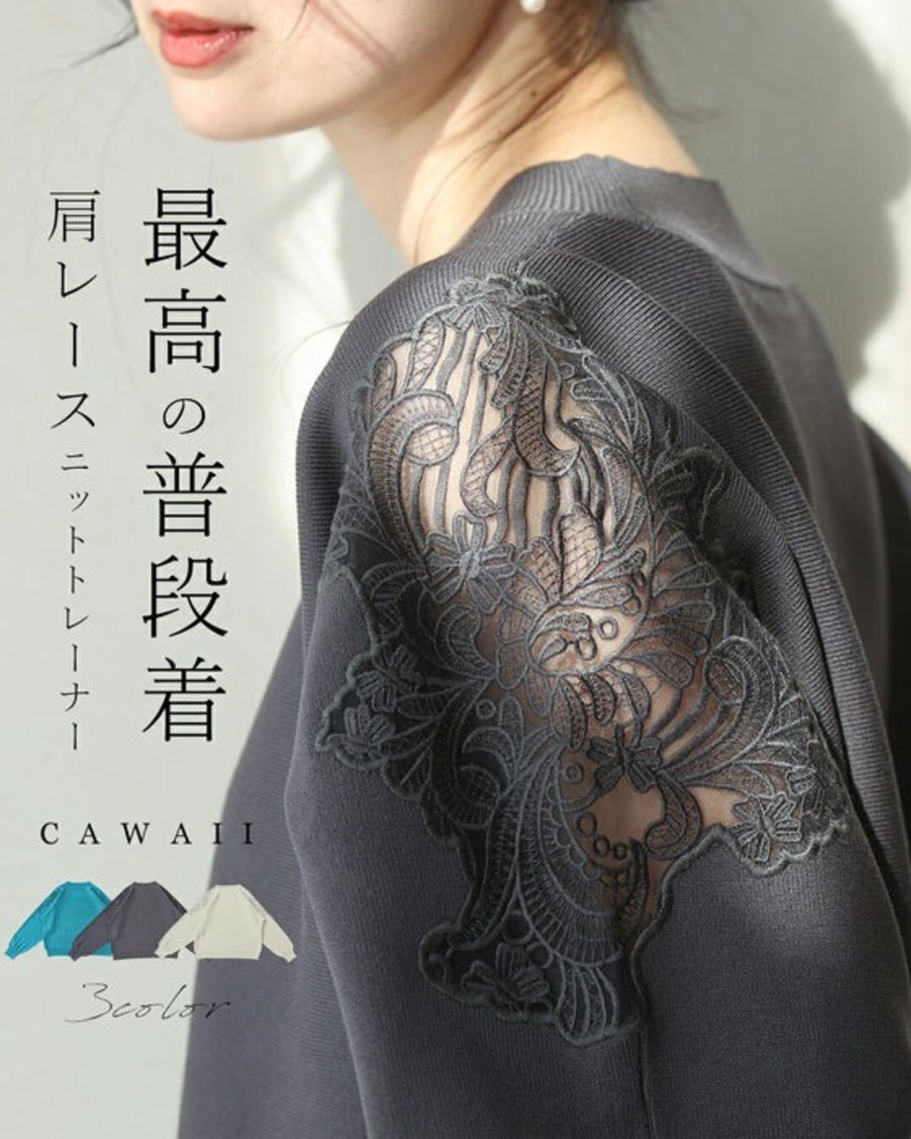 最高の普段着 肩レースニットトレーナー 【fbk00056od】