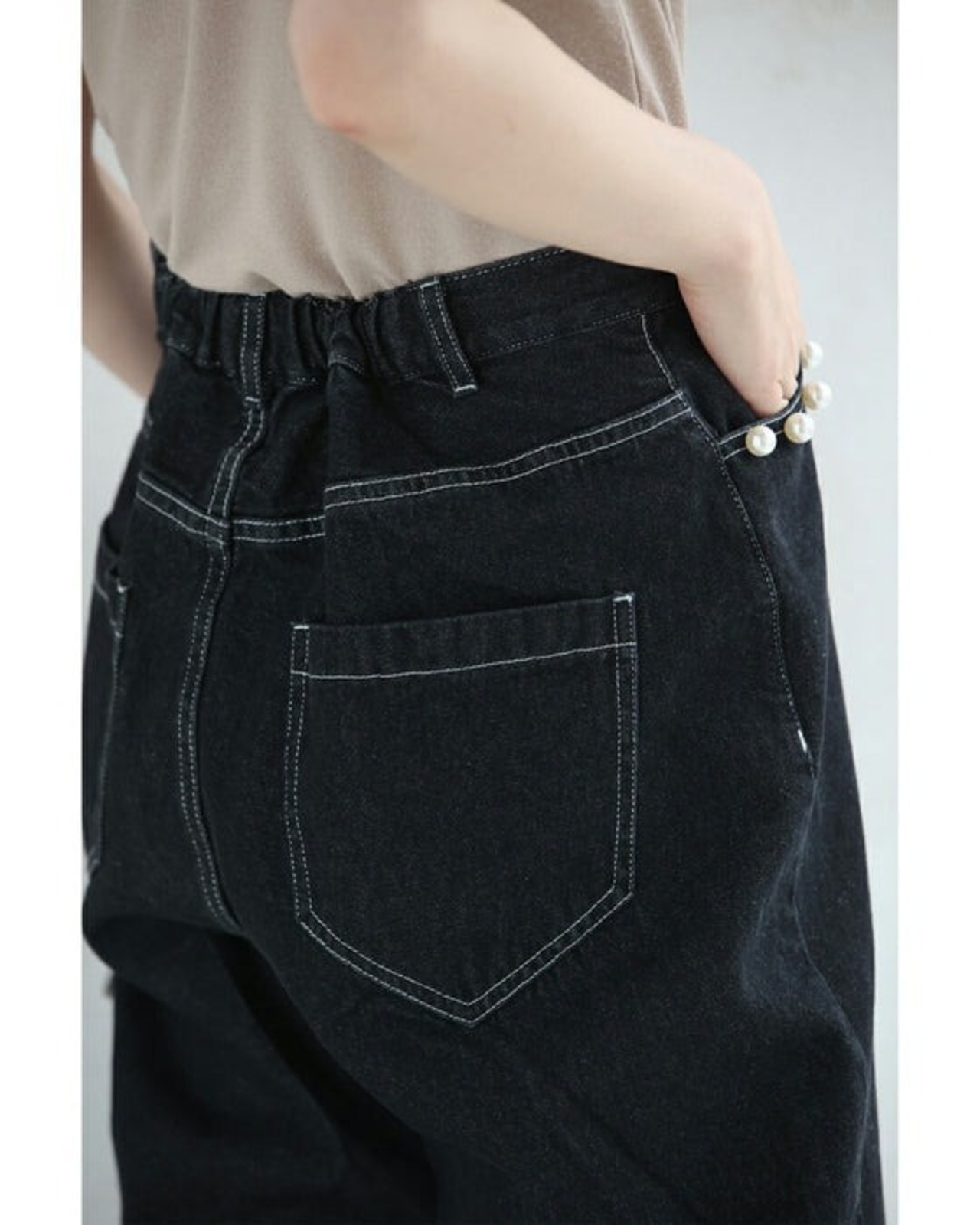 縁取りパールポケットのデニムパンツ 【fse00087od】