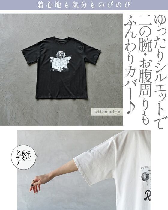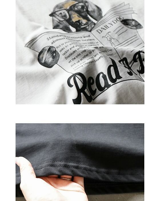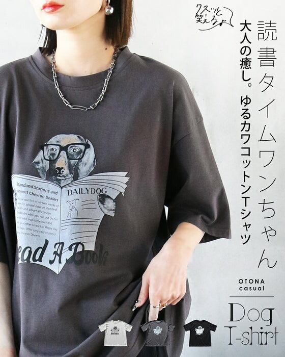クスッと笑える♪ 読書タイムワンちゃん 大人の癒し。ゆるカワコットンTシャツ