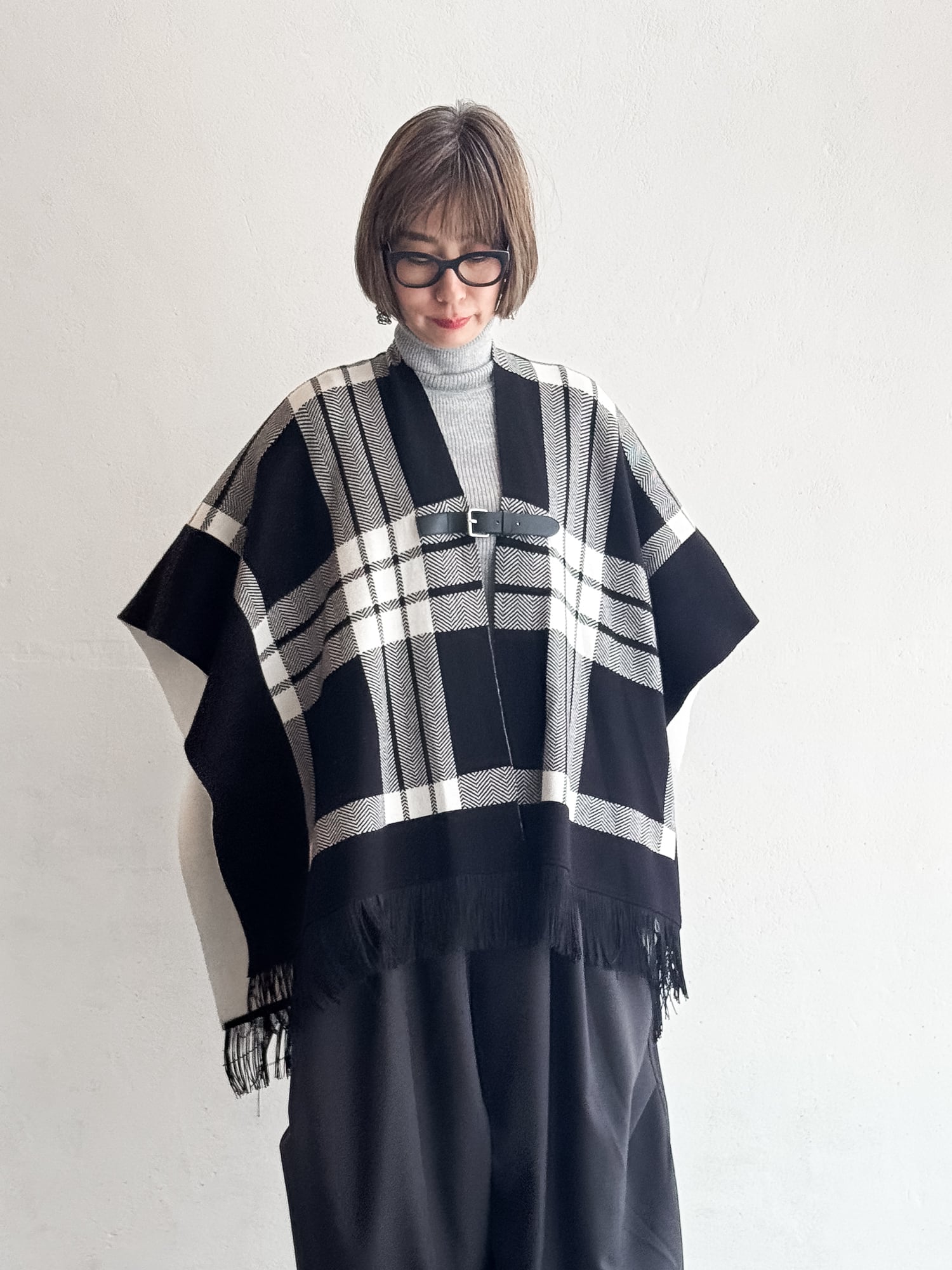 ドルマン袖の上に羽織れる チェックケープストールショール