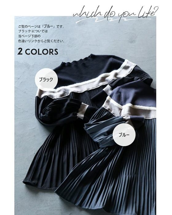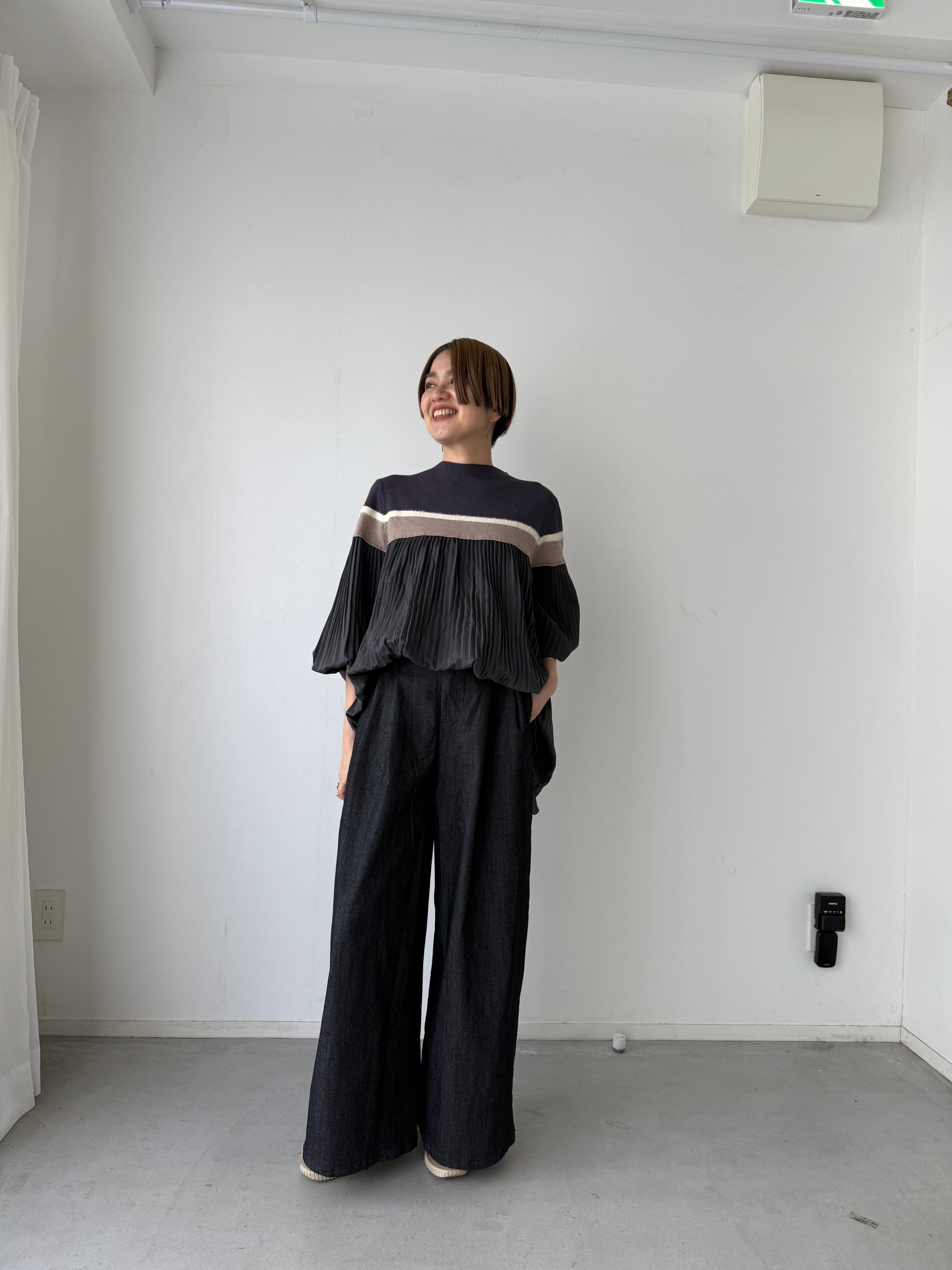 【グレー】プリーツと配色ラインで魅せる大人可愛いゆったりトップス