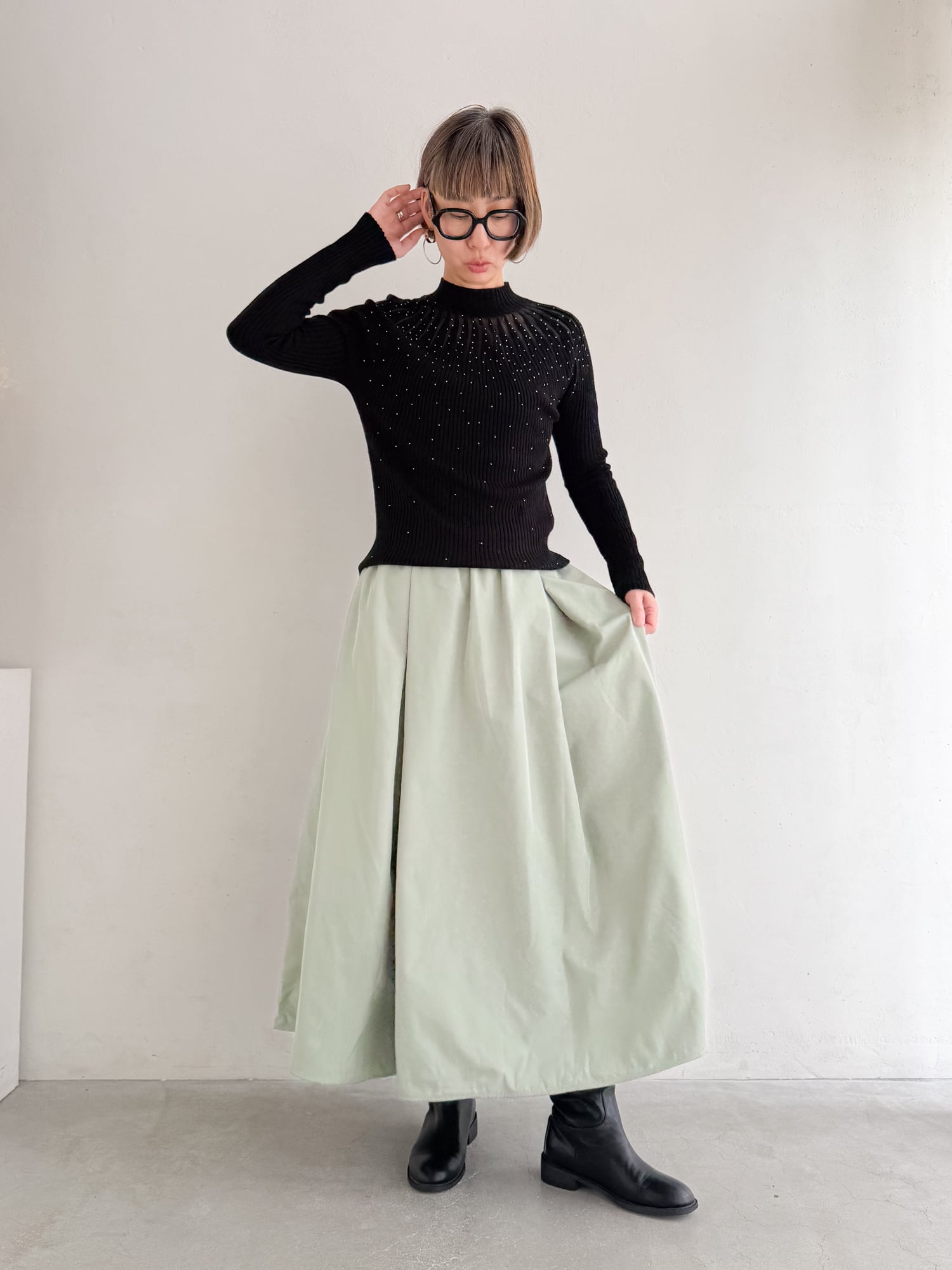 降り注ぐオーロラビジューの流線ラインリブカットソートップス