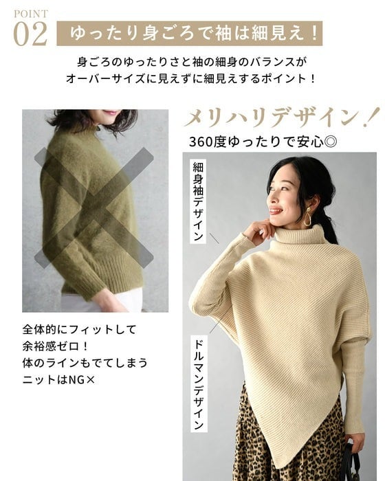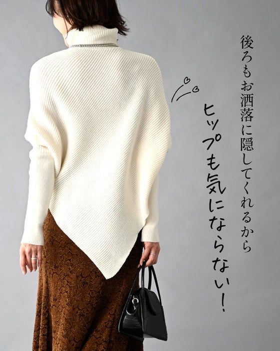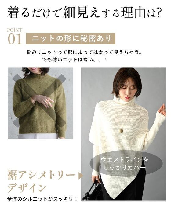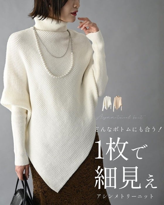 1枚で細見えアシンメトリーニット