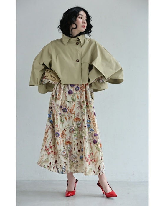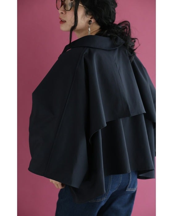 ゆるやかなカーブシルエットのモモンガショートトレンチコート
