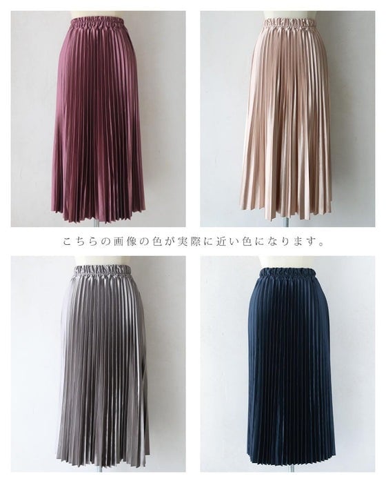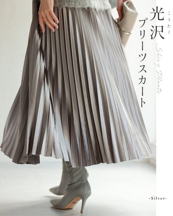 落ち感美しい 光沢プリーツスカート 【wkj00011】