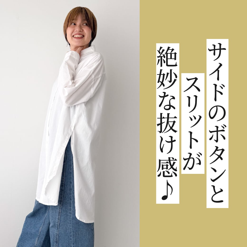 スリットに並ぶボタンシャツチュニックシャツ 【b08127ko】